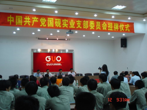 儀式由街黨工委副書記趙思能同志主持,街道辦事處主任周國棟、公司董事長總經(jīng)理王聲位分別在掛牌揭幕儀式上作了熱情洋溢的講活,并為國硯實(shí)業(yè)有限公司黨支部正式掛牌揭幕。